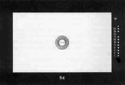 The viewfinder of the X-700 was similar to that of the XG-M camera. The recommended (i.e., metered) shutter speed appear on the right of the screen on the familiar LED scale, and the manually-set aperture appears on the bottom. The exposure mode now appears at the top of the LED scale (instead of the bottom), and shows an "M" for manual mode, an "A" for aperture-priority mode, or a "P" for programmed-exposure mode.