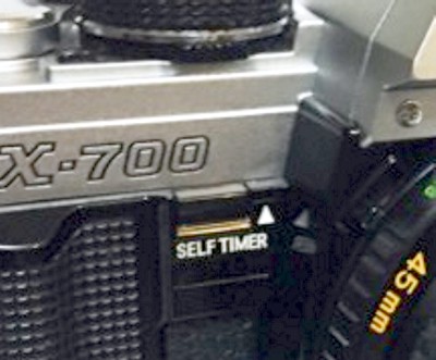The original model of the X-700 is very hard to find. You can identify this version with the words "SELF TIMER" under the "X-700". That's right, the self-timer switch was moved from near the rewind crank, since it has the same body as the XG-M.