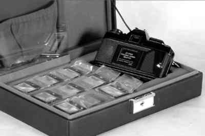 Go figure. Maybe too many people were referring to the original X-700 as the X-700 SELF TIMER. Who knows? But Minolta wasn't happy for some reason! And Minolta didn't stop there. They decided to add an exposure lock to the X-700 -- even though the camera already had a +/- 2EV exposure compensation dial and full manual control for those few people who prefer to override the automatic exposure. Minolta added this new feature to the self-timer switch. Pull it up for the self-timer; push it down for the exposure lock. The prism is marked "AEL" (for "Auto-Exposure Lock"), right under the "S.T." so you won't forget it's there, and little arrows remind you in which way to push the button. The X-700 (model b) is only available in black and is the only Minolta SLR to offer an exposure compensation dial and an AE lock button on the same camera.