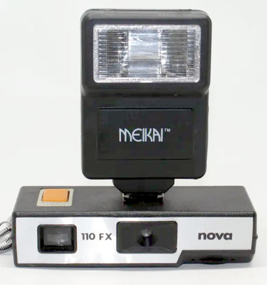 Not a titan in the 110 arena, it is a simple 110 camera, but with a relatively fast f5.6 lens and a built-in flash -- with ON/OFF switch and ready light -- using two AA batteries. Undoubtedly sold under other names.