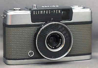 (1968-1871) Same as Pen EES, but hot shoe added. ISO speeds from 25 - 400. Four settings on the focusing ring. Only accepts 43.5mm filters. Available in black or grey leatherette.