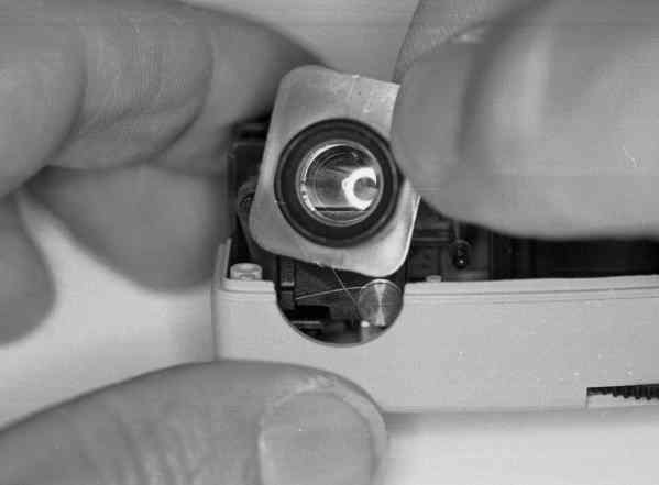 Next, figure out how to gain access to the lens area. Chances are the lens is on a plate that slides out or is screwed or glued in place.