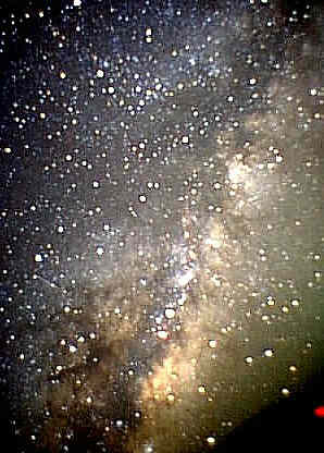 The second pic is taken in the dark skies of southern Texas. This is the Milky way in all its glory--the lower part of the pic is towards the core of our galaxy. The more astronomy minded people can easily pick out a variety of nebulae and star clusters. The red light is my safety light just visible in the corner (and the edge of the tripod). This was shot with Minox Professional 100 color for abut 2 minutes--the shot is without any magnification and was taken with a Minox B. It was scanned in and slightly enhanced to bring up the contrast."
