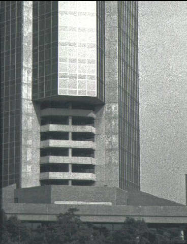 "The one of the tower is from a 10x14 (full height of Minox head), and the one of the light fixture is from an 8x10. Both are printed straight with a grade 1.5 filter (I'm going to reprint at 0.5 because of my scanner's properties) and without using the Opal diffuser on the enlarger. The reprints will also (at least some) use the opal filter. My scanner stinks; I am going to have to persuade my wife that it's OK to buy one of the new UMAX 300/600 flatbeds so I can scan from a full-sized print and not have things like the vertical lines on the tower take up only two screen pixels each. And so I have some real control over gamma!" Copyright 1997, Peter Zimmerman.