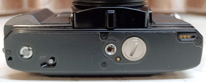 This one is an odd bird, and very hard to miss due to its huge, built-in, hand grip. The shutter release is NOT on the top plate of the camera, but instead on the top of the grip. However the shutter speed dial is in the normal location and takes some time to get used to. Since it lacks the shutter speed selector dial on the hand grip, it was obviously designed to be used with an auto-winder. And although it has all of the connections for use with the Minolta Motor Drive 1, the hand grip is too large to allow it to fit.