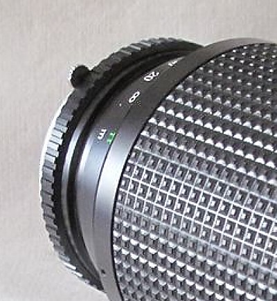 An updated version of the MD Minolta 75-200mm 4.5 zoom (below). A one-touch, super-quality zoom . And again, Leica liked it so much they sold it as the Leitz Vario-Elmar R 70-210 f4. It's 1/3 f-stop faster and about the same size and weight. The f-stops appear in the viewfinders of cameras that are equipped to display them. |