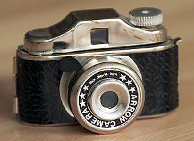 -- (1948) Fixed-focus lens in a rectangular body, similar to the Minolta 16 -- even though it used 17.5mm paper-backed film.. Speeds of B, 1/25 - 1/100. Hard to find.