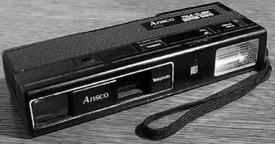 (1985) Despite its name, this camera is NOT a sparkplug. It was the same as the Ansco 600 but with a switchable tele lens. Accepts 100 and 400 film.