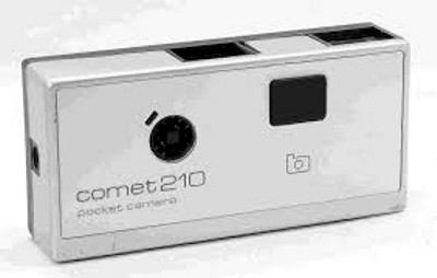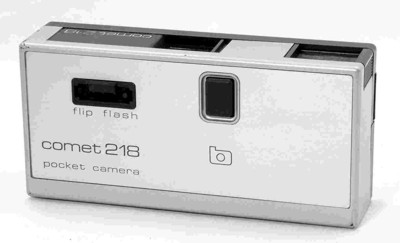 (1979) This is an updated version of the Comet 418 with a few changes. It had the same lens, aperture settings, and built-in meter, but the shutter speeds were changed to 1/200 and 1/40. In addition, it was designed to accept either ASA 100 or the new ASA 400 speed 110 film, and it added a built-in handle/cover like the Kodak cameras of the time.