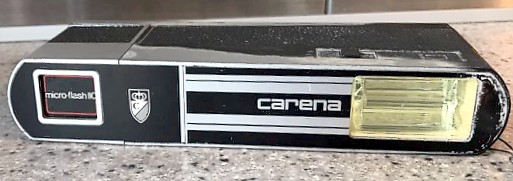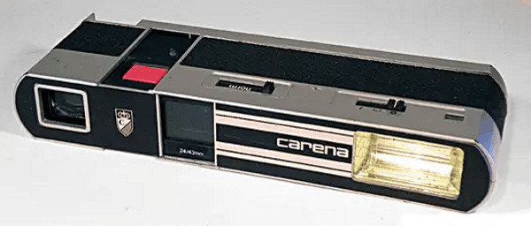 Same as the Micro flash 110, but it adds a longer lens. The camera can be set for normal (24mm) or Tele (43mm) use. Made by Haking, and sold under other brand names, such as the Hanimex Mini EF Tele.