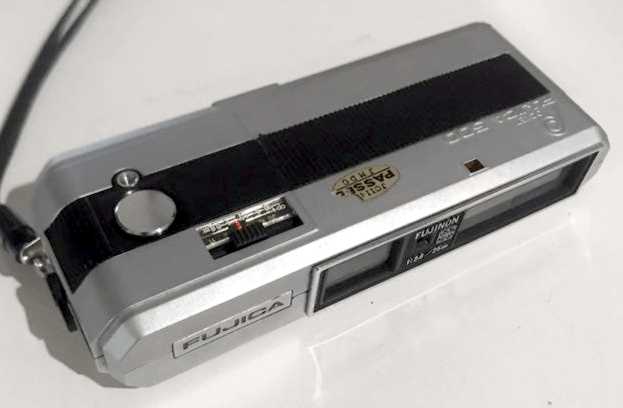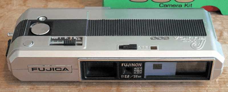 Most of Fuji's 110 cameras do not use the 110 film perforations to cock the shutter. This mean that these cameras can be reloaded with 16mm film (in 110 cassettes, of course) -- if a small change is made to the camera or the cassette. The 16mm film can be perforated or unperforated, but if it's perforated the perforation will appear in the mage. Specifically, some of these Fujica cameras have a tiny "cassette sensor" along the edge of the film plane. If a small notch is cut into the edge of the cassette to avoid pushing the sensor in, the camera will operate normally. Other models have a much larger cassette sensor/tab in the bottom of the film take-up chamber. If this sensor is filed or cut off, the camera will work -- or the cassette can be trimmed in the same spot.