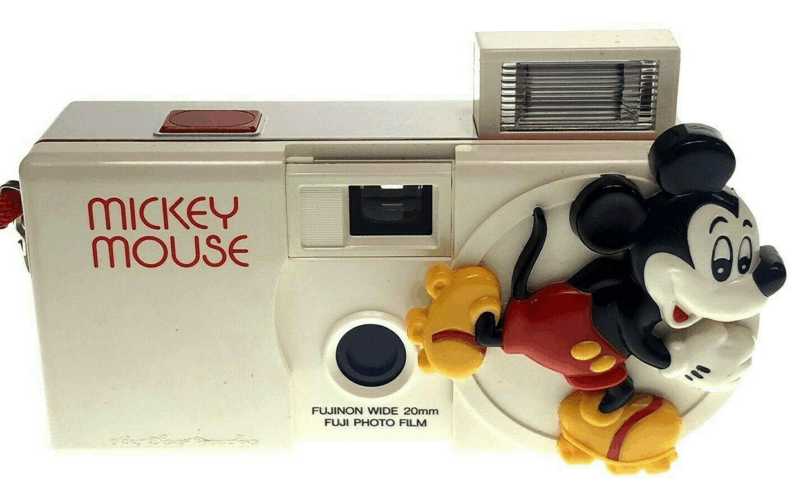(1983) The Mickey Mouse is a Fujica Pocket 380 in Japan's Disneyland clothing -- actually a white cover -- with Mickey on rollerblades on the front, of course!