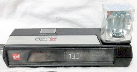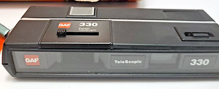 A step up from the 440, it has a 24mm f2.7-22, (4/3) zone-focusing lens. Electronic shutter with speeds of 15 seconds - 1/500. Flash speed of 1/90. CDS meter provides semi-programmed exposure control. Tripod and cable release sockets. Uses a K battery, and has a built-in hot shoe on the end. Like many 110 cameras, it was typically sold in a kit with a GAF Pocket Lite flash, film, battery, wrist strap, manual, and case. Made by Chinon. Same as the Chinon Mini-55.