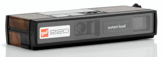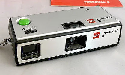 (1977) It doesn't look like the original with its new, mostly chrome body, but that's the major difference. It has a slightly longer 28mm f11 fixed-focus lens, so it allows you to get more "personal" -- I guess! Instead of flash cubes it has a Flip-flash connection built in, and an ON/OFF switch for the flash. Now THAT'S what I call exposure control!!!