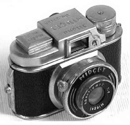 -- This is the post-war (1949) version. Nearly identical to the later version of the model 1. Fixed-focus 20mm (f4.5) lens. Speeds of I (1/50) and B.