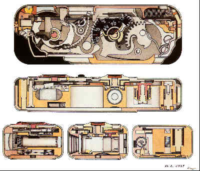 After the War, Zapp and "company" got out of Latvia (an interesting story in itself) and moved to West Germany. In some ways it's surprising that the Soviets did not copy the Minox Riga and start production on their own (although they probably made several cameras post-war from left over parts). They did this with many other cameras, including some 35mm Minox models. The Minox Riga cases are also collectible; the zippered one in blue, brown, or black and marked 'Riga' is the most common. The original Minox lens is not as sharp near the edges of the frame as later lenses; that and the price leave this camera less useful as a shooter than later models. For more information on Minox History, check out the LIBRARY section of the SUBCLUB.