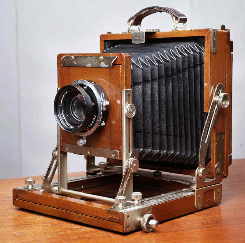 Here's a table of many wooden, folding 4x5 field cameras displaying the above movements of each, and many other details -- click on the name of the individual camera for a photo. On this table, wooden 4x5 cameras are not listed if the don't fold up -- there are several of these, including pinhole cameras. Likewise, 4x5 cameras with metal or plastic bodies are not listed even if they do fold up -- there are several of these as well, but they tend to be heavy. Please note that many of these cameras were available in several different styles, even though the model number might be similar -- or exactly the same. So don't be surprised if the specifications shown here are different from the specifications of the camera you are looking at. In addition, the specifications of any camera can change depending on the use of various accessories, such as recessed lens boards, extension lens boards, bag bellows, etc..